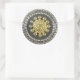 Um adesivo redondo com uma imagem de ouro ornamentado e medalhão de prata. Veja confetti e papel de empacotamento. Veja toda a coleção de adesivos Gemstones & Medallions na seção CARDS, POSTCARDS & STICKERS.