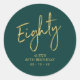 Este simples obrigado personalizado que você adesivo adicionará detalhes de na moda ao seu dia especial. Este design apresenta um script dourado moderno com a letra "Oitenta" com texto personalizado sobre fundo verde. Convites de 80 e material de festa coincidentes estão disponíveis no meu compro BaraBomDesign.