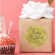 Lindos adesivos redondos clássicos com seda dourada e estrutura de brilho de ouro com "Feliz Natal" em letra de script! Dois tamanhos disponíveis.