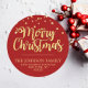 Linda escrita de caligrafia personalizada Merry Christmas Holiday retorna adesivos de endereço para adicionar aos envelopes, cartões de saudação e/ou presentes. Cor do fundo vermelho (pode ser alterada para qualquer cor) com configuração falsa de brilho dourado. Perfeito para qualquer ocasião de feriado. Etiquetas de modelo editáveis.