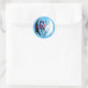 Um dragão roxo e branco no ar formando um coração com suas asas e entre elas um calor Celta vermelho e rosa com fundo azul.