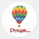 Adesivo inspiracional com balão colorido de ar quente e mensagem "Sonho" embaixo. presente de novidade excelente para quem precisa de encorajamento!