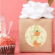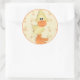 Um pequeno pato amarelo giro num fundo amarelo pálido. O fundo tem muitos patos pequenos em várias poses.