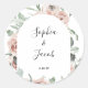 Este adesivo de casamento floral de eucalipto, cor-de-rosa, empoeirado, é perfeito para um casamento do estilo boho de primavera ou de verão. Este design apresenta florais de aquarelas rústicas em rosa-pincel empoeirado com eucalipto e verde-salva. Faça deste adesivo seu próprio incluindo seus nomes e data de casamento. Para mais personalização, clique no link "personalizar mais" e use nossa ferramenta design para modificar esse modelo.