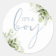Adesivo É um menino Dusty Blue Greenery Favor de Chá de Be