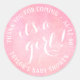 Adicione um toque elegante personalizado aos convites para o chá de bebê, obrigado notas, favoritos para festas e decorações com estes adesivos chic calliografia redondos / selos de envelopes. Bonito fundo cor-de-água rosa-claro é perfeito para uma menina. Design apresenta a tipografia de script moderno na moda no centro com nome e data do evento em círculo. Parabéns! É uma garota! Como opção, personalize o texto para um nome e endereço para uso como etiquetas de endereço de retorno redondo.