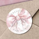 Um adesivo de laço rosa superdimensionado com um laço cor-de-rosa água-marinha ousado e adorável que preenche o espaço, criando uma aparência impressionante e elegante. No topo, exibe o nome da mãe em uma fonte serifada clássica, enquanto na parte inferior aparece "Baby Shower". No centro, a frase "É uma menina!" é lindamente exibida em caligrafia manuscrita, adicionando um toque doce e comemorativo.