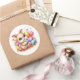 Round sticker is shown with a cute Easter bunny art print.