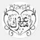 Eid Mubarak coração, adesivo preto e branco em www.zazzle.com/ArtIslamia