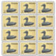 Um selo postal de uma hipotética Alasca independente apresentando uma escultura em esteatito de um pato-eider. O fundo é de couro de alce curtido com cérebro. Esta é uma renderização digital, não um objeto real de esteatito. O Eider Comum, Somateria mollissima, é o maior pato encontrado na Europa e na América do Norte (exceto o pato-doméstico, que só chega à América do Norte em estado selvagem no extremo sul do Texas). O Eider é distribuído pelas costas do norte da Europa, América do Norte e Sibéria oriental. Ele se reproduz nas regiões árticas e em algumas regiões temperadas do norte, mas passa o inverno um pouco mais ao sul em zonas temperadas, quando pode formar grandes bandos em águas costeiras. Pode voar a velocidades de até 113 km/h. O Eider é caracterizado por sua forma volumosa e bico grande em forma