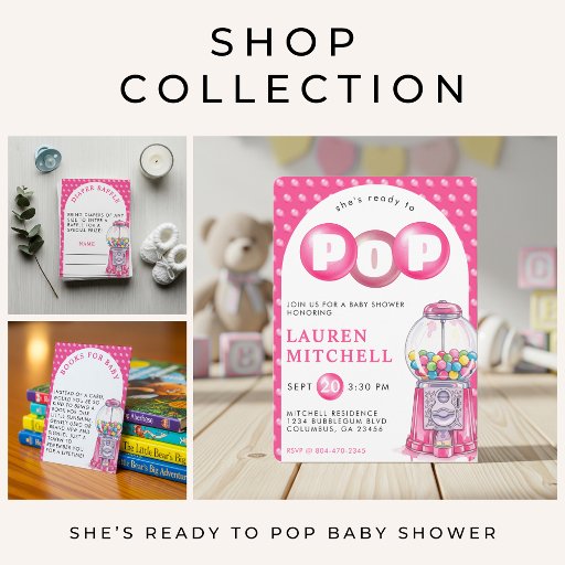 She's Ready To Pop Bubblegum Pink Girl Baby ShowerCriado por Saint Mari