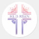 Comemore a Páscoa com este belo adesivo personalizado. Minha fotografia original de um lago em Suiça é sobreposta à minha cruz desenhada pela mão. Cria um lindo efeito do nascer do sol. "Ele está levantado" está escrito em uma escrita simples e moderna. Este adesivo redondo seria excelente de compartilhar a fatih cristã na ressurreição de Jesus Cristo. Seria excelente para cestos de Páscoa, envelopes de Páscoa, decoração de ovo de Páscoa ou presentes de Páscoa. Partilhe o evangelho e a esperança na cruz vazia com os seus amigos e vizinhos. O texto é editável se você quiser adicionar um nome de família ou outro texto espiritual curto.