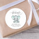 Bons adesivos neutro por gênero para os favores do seu chá de fraldas e correspondência com "Um Doce Pequeno Amendoim Está a Caminho" escritos numa mistura de tipografia de cinza mole e um roteiro de na moda, e uma aquarela verde-menta pastel de um elefante bebê. Personalize o nome da futura mãe e a data do chá em uma simples tipografia de cinza.