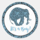 Um elefante damasco exótico em tons de azul sobre preto com o texto moderno anunciando "É um menino!". Se preferir adicionar seu próprio texto a este adesivo, escolha o botão "Personalizar" e exclua a imagem "É um garoto!" e insira seu próprio texto personalizado. Consulte o convite de chá de fraldas correspondente aqui: