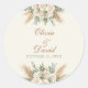 Add a beautiful finishing touch to your wedding details with this elegant beige pampas grass wedding sticker. Designed with soft ivory roses, delicate eucalyptus greenery, and natural pampas accents, it perfectly complements boho, rustic, and neutral wedding themes.