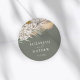 Finish your wedding stationery with this elegant round sticker featuring original watercolor pampas grass, off-white florals, and earthy botanical accents set against a rich dark green background. Perfect for sealing envelopes, decorating favor bags, welcome boxes, or gift packaging. Personalise with your names and wedding date to create a warm, cohesive, and stylish detail that complements rustic, boho, desert, woodland, or modern wedding themes.