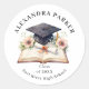 This elegant sticker features a beautiful watercolor graduation cap, an open book, and a tied diploma surrounded by delicate blush pink anemone flowers and baby's breath greenery. It is the perfect finishing touch for high school or college graduation announcements, party favors, or thank you envelope seals. Easily personalize the classic serif typography with your graduate's name, class year, and school name to make it truly your own. Celebrate this incredible educational milestone and order yours today!