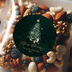 Add a festive touch to your holiday packaging with this elegant round sticker featuring a beautifully illustrated Christmas tree surrounded by gifts on a rich green background. Perfect for sealing envelopes, decorating gift bags, or adding a classic holiday accent to cards and wrapping.