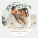 Elegant Gold Script "Merry Christmas" Calligraphy One Family Photo Merry Christmas Holiday Large Sticker with a little heart motif accent, family photo, name and year template. Great for Mailing Accessories Envelope Seals and Gift Stickers.