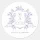 Classic lavender vintage crest wedding round sticker with monograms — perfect for a modern classic or romantic vintage wedding. For more advanced customization of this design, please click the DESIGN TOOL BUTTON above!