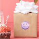 This elegant wedding sticker features a circular design with a gradient background transitioning from soft pink to deep purple. The minimalist layout includes large, dark purple initials "M" and "K," separated by a vertical line, set against a light lavender backdrop. Below the initials, the phrase "THANK YOU" is written in a smaller serif font, conveying gratitude in a sophisticated manner. The modern and refined style makes it perfect for expressing appreciation at weddings or special events, adding a touch of class to any celebration.