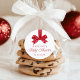 Add a festive finishing touch to your celebration with these Christmas baby shower stickers featuring a red watercolor bow hanging from a ribbon. “Baby Shower” is displayed in elegant red calligraphy, creating a timeless and charming design perfect for holiday-themed showers. Personalize the stickers with the mom-to-be’s name and shower date to make them truly special. Ideal for sealing envelopes, decorating baby shower favors, or adding coordinated details to your party décor, these stickers bring festive charm to every element of your Christmas baby shower.
