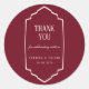 Wedding thank you stickers featuring a digitally hand drawn frame with your personalized information in elegant script and serif fonts on a burgundy background. You can find more matching products from this stunning wedding collection in our store.