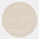 Adesivo elegante bege moderno com script do chá de fraldas