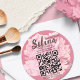 Aprimore seu marketing e noivado cliente com nossa etiqueta de código QR, projetada exclusivamente para um chic e um sofisticado estúdio de maquiagem. Este rótulo apresenta uma mistura harmoniosa de cores cor-de-rosa macio e creme com um design floral espantoso e sobredimensionado, combinando elegância e funcionalidade sem falhas. Crie uma ponte perfeita entre sua presença física e digital com uma etiqueta de código QR tão na moda e sofisticada quanto seu estúdio de maquiagem. Perfeito para aprimorar o noivado do cliente e promover seus serviços de uma forma elegante e moderna.