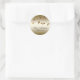 O Dourado Elegante e o Preto Deixam os Autocolantes redondos clássicos concebidos com Douradas Folhas de queda coloridas sobre fundo dourado. O texto negro inclui: Os primeiros nomes e a data de casamento da noiva e do noivo. Para personalizar, basta inserir seus detalhes em nosso modelo fácil, substituindo o texto de exemplo.