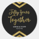 Este elegante adesivo de aniversário redondo apresenta um giz geométrico e a palavra "Cinquenta Anos Juntos" em dourado falso contra fundo preto. É excelente para uma comemoração do 50º aniversário de casamento. Confira os convites e itens correspondentes aqui http://www.zazzle.com/collections/modern_faux_gold_chevron_celebration_collection-119531050277382712?rf=238364477188679314 Personalize-o com seus detalhes substituindo o texto do marcador de posição. Para obter mais opções, clique no botão "Personalizar". *Observe que a Marca d'água do Zazzle que aparece na visualização de zoom NÃO aparecerá no produto impresso final. © Rosewood e Citrus