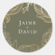 Elegante arte de linha dourada com flores e folhagens, adesivo personalizado. A cor de fundo mostrada em verde musgo de terrário chique pode ser personalizada.