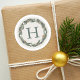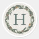 Adesivos rústicos modernos para as festas apresentam uma grinalda de verde aquarelada pintada com lauréis, com pedaços de pinheiro, frutos vermelhos e pinhas. A paleta de cores neutras inclui verde, branco dourado metálico, bege, marrom, branco esbranquiçado e branco crocante. Personalize com o seu monograma inicial personalizado.