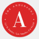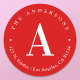 Adesivo Elegante Monograma Vermelho e Branco com Endereço