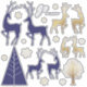 Uma coleção de adesivos para suas decorações de férias para pacotes e envelopes - cervo, flocos de neve, árvores em azul escuro e ouro - escolha transparente ou branco