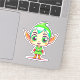 Um pequeno elfo de Natal bonito com grandes orelhas e olhos verdes.