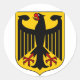 Casaco da Alemanha. A casaco de braços da Alemanha exibe uma águia negra (a "águia federal", antiga Reichsadler "Águia imperial") em um escudo amarelo (Ou, uma águia exibindo um calcanhar). Trata-se de uma reintrodução do casaco de armas da República do Weimar (utilizado em 1919-1935), adotado pela República Federal da Alemanha em 1950. A atual design oficial deve-se a Tobias Schwab (1887-1967) e foi introduzida em 1928.