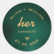 Emerald Green e Dourado Seu Favorito Seu Padrinho Clássico De Redondos Favorito | Seal personalizado do Tratado de Casamento Luxe Adicione um toque doce e personalizado aos seus favores de casamento com o nosso encantador Emerald Green e Dourado Seu Favorito Seu Padrinho Clássico Favorito! Estes adesivos encantadores apresentam um verde-esmeralda luxuoso e design de ouro, brincando anunciando "Seu Favorito" e "Seu Favorito". É a maneira perfeita de compartilhar um pouco de sua personalidade com seus convidados e lindamente selar seus favores de casamento. Este seu adesivo favorito favorito é ideal para casais que buscam uma maneira única e memorável de obrigado de seus convidados. O verde esmeralda profundo traz um senso de riqueza, enquanto os sotaques de ouro opulentes (ou efeito de folha de ouro, se aplicável) fornecem um toque de glamour latificante. Esta design complementa perfeitamente os modernos temas elegantes, minimalistas, ou luxuosos do casamento, fazer seus favores pessoais e na moda. Seus hóspedes vão adorar descobrir qual tratamento pertence a quem! Personalize facilmente estas selas de casamento luxuosas personalizadas adicionando seus nomes, data de casamento ou uma breve obrigado que você envia. Você pode personalizar as fontes e a colocação de texto para corresponder perfeitamente à sua única visão de casamento. Feito com material autoadesivo de alta qualidade, estes adesivos redondos clássicos são fáceis de aplicar a bolsas, caixas, frascos ou qualquer superfície lisa, fazer-os de uma maneira prática e bela para personalizar sua apreciação. esmeralda verde favorita, ouro, seu adesivo favorito, favor personalizado de casamento, selante de luxo favorito, adesivo favorito de ouro verde, adesivo favorito de casamento, adesivo de luxo, vinheta de casamento de luxo, etiqueta favorita do casal