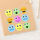 Adicione alguma emoção com estes colorido adesivos emoji faciais. Os rostos emoticônicos em amarelo, rosa, laranja, azul e verde retratam um rosto feliz, um rosto triste, um rosto risonho, um rosto surpreso e um rosto piscando.