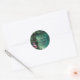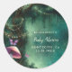 A whimsical watercolor illustration of a majestic tree in an enchanted forest, with lush foliage in emerald green, sparkling with fairy lights and magic dust, with a sprinkle of mushrooms and butterflies in pink and purple, decorates this spring summer fall winter baby shower sticker with an enchanted forest theme or mushroom theme or woodland theme. An elegant, modern invitation for a fairytale baby shower. Perfect for moms and parents who love the fairytale forest setting, the fairy forest or fairy garden theme, the mushroom theme, butterflies theme and emerald green, mauve, lavender and pink.