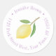 Este design de adesivo flexível apresenta um único limão aquarela com folhas, rodeado por texto roxo em formato circular. Mostrado aqui para um adesivo de endereço de devolução, mas todos os campos de texto são flexíveis às suas necessidades.