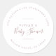 Esses adesivos circulares de endereço de retorno de chá de fraldas mínimos são perfeitos para um simples envelope de convite de chá de fraldas. O design apresenta rosa ouro clássico e tipografia branca emparelhados com uma fonte rustica, mas elegante, com estilo manuscrito.