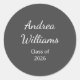 Adesivo cinza de formatura da turma de 2025, com letras personalizáveis e um design simples. Ótimo para planejar as atividades marcantes do seu graduado especial.