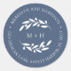 Folga Azul Monograma Logotipo de Casamento Retorno de Endereço Clássico Redondo... Seu logotipo personalizado de monograma está na frente e no centro do nosso endereço de entrega azul de casamento/selo de envelope. As iniciais da noiva e do noivo são bordadas por uma coroa de oliveira para coordenar com a nossa única coleção de casamento em tons de azul empoeirado e ardente. Todo texto de exemplo pode ser facilmente revisado com seus próprios detalhes no modelo de personalização.
