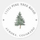 Adesivo Redondo Clássico de Endereço de Devolução de Casamento de Floresta de Montanha com Pinheiro