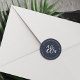 Coloque seus envelopes de casamento com esses adesivos elegantes de endereço de retorno a cores sólidas que contêm suas iniciais trabalharam em um monograma unido por um ampersor de script decorativo, em um rico fundo azul marinho. Personalize com seu endereço de retorno em branco ao redor da borda do círculo. Concebido para corresponder à nossa coleção de convites de casamento Ampersand Monograma.