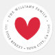 Etiqueta de endereço de devolução redonda personalizada com um coração vermelho fofo no centro, rodeado pelo seu nome e endereço.
