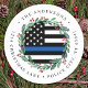 Adicione o toque final aos seus envelopes, cartões de Natal e papel de carta com esta única bandeira azul-fina da polícia, bandeira Natal Devolva Rótulo de Endereço - Feriado em uma bandeira da polícia, design design azul-preto moderno, com sombra e bagas. Personalize com o nome e endereço da família. Esta etiqueta de endereço de Natal da polícia é perfeita para policiais, polícias e família da polícia. COPYRIGHT © 2020 Judy Burrows, Black Dog Art - Todos Os Direitos Reservados. Polícia - Linha Azul Azul - Retorno de Natal - Clássico Autocolante