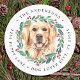 Adicione o toque final aos seus cartões de natal nesta temporada de festas com este elegante recuperador de ouros em uma faixa design de natal, etiquetas de endereço de retorno e decor correspondente. Esta etiqueta de endereço de retorno de feriado do recuperador de ouros apresenta um cão aquarela em uma coroa verde e vermelha com sombra e bagas. Esta etiqueta de endereço de retorno do recuperador de ouros será uma favorita entre amantes do recuperador de ouros, amantes de cães e amantes de os animais. Visite nossa coleção para combinar cartões de natal de recuperação de ouros, decoração doméstica e presentes. COPYRIGHT © 2020 Judy Burrows, Black Dog Art - Todos Os Direitos Reservados. Ouro Retriever Cachorro de Natal Endereço Clássico Round Sticker