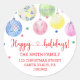 Folhetos de Natal decorativos com endereço de volta. O design de aquarela é um brinquedo colorido de árvores de Natal com um confete vermelho, verde e azul.